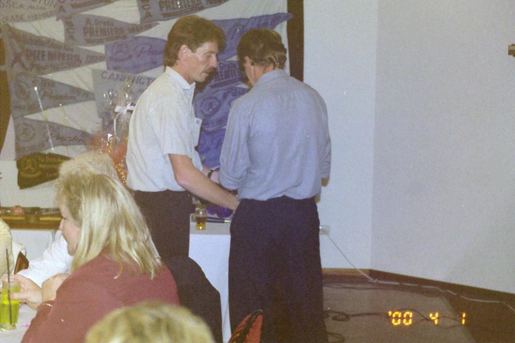A younger Donelle DowningIn the coloured shirt Steve O’Neil with Dennis Todd next to him and James Todd in the brown shirt.Mark RichardsJohn DowningPeter Walker left Phil McLean on the rightLyn MacGrotty and John DowningLyn MacGrotty, John Downing and Kevin HaggerJohn Downing with Gerald Hunt with his back to usJohn and Donelle DowningFrank MacGrotty and John DowningJohn Downing and Frank MacGrottyFrank MacGrotty & John DowningJohn Downing holding the Frank MacGrotty Club Person PlaqueMerv & Lyn MacGrottyAlan SmitJohn SimmsJason BeetGerald Hunt (left) Merv MacGrottyMerl and Frank MacGrottyMerl and Frank MacGrottyLife members from left: Steve Ternardi, Frank MacGrotty, Syd Godfrey, Tom Barr and Clayton BrownGlenda Godfrey, Mark RichardsTom and Linda BarrFrank & Merle MacGrottyPhil McLean & Rob SimmsPeter Waler on the rightplayers and supportersChris WisseFrank MacGrotty and Kevin HaggerPaul TompsettPeter WalkerSupporters at a finals gameSyd GodfreySupporters at a finals game